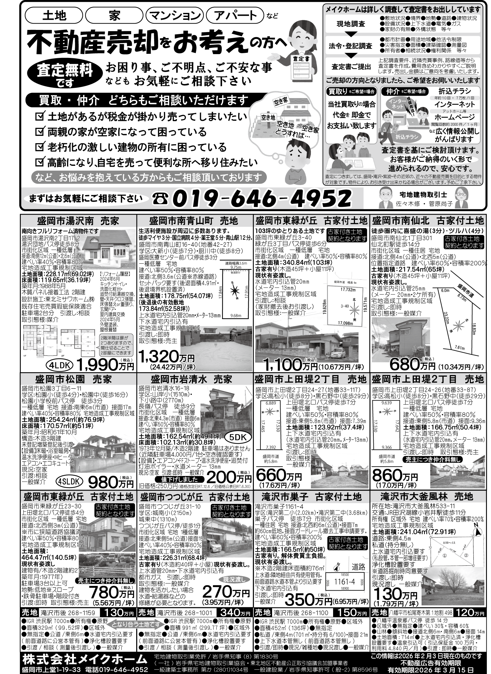 お見積無料 019-646-4952 (8:00~5:00)