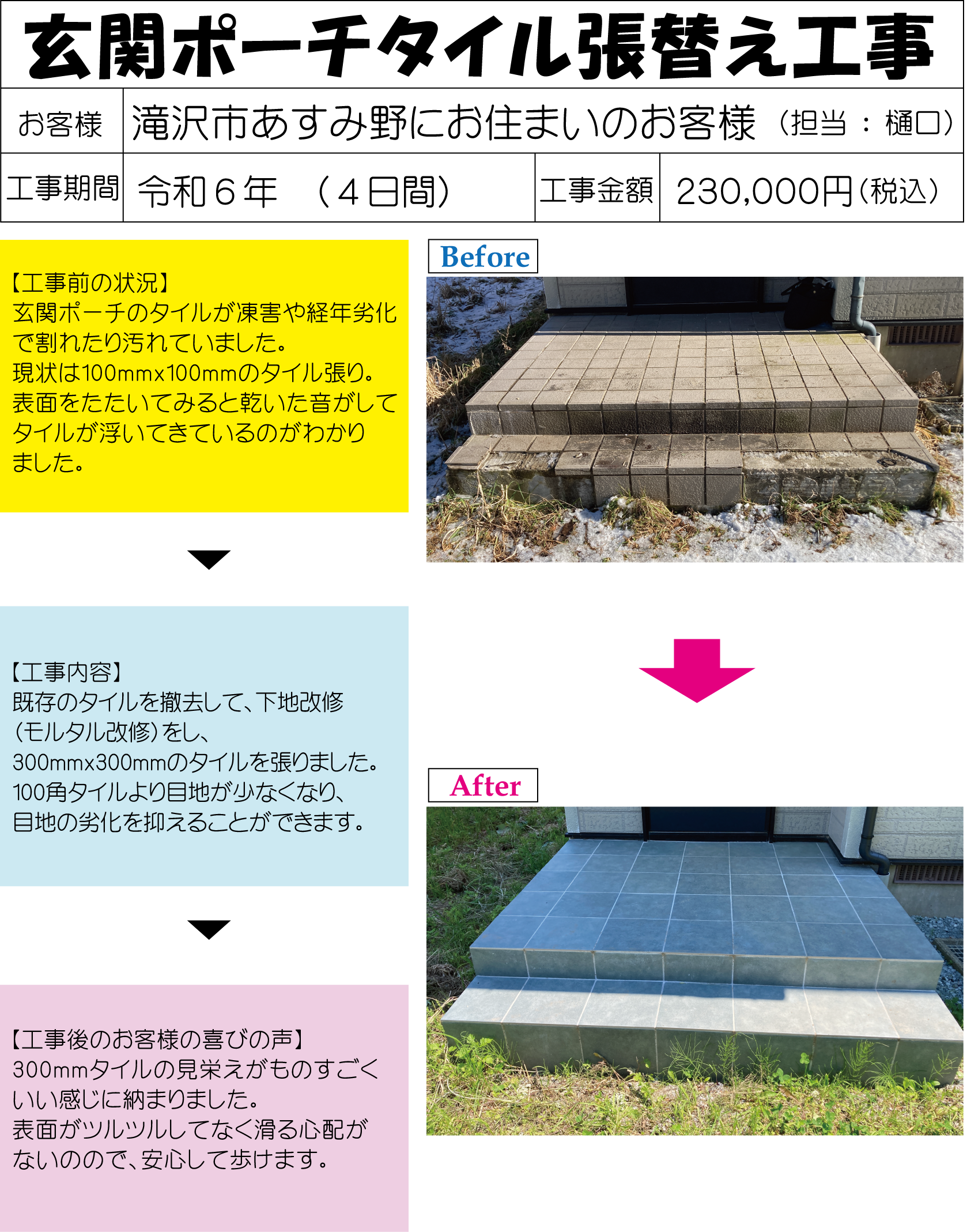 100角→300角タイルへ 工事期間 4日間